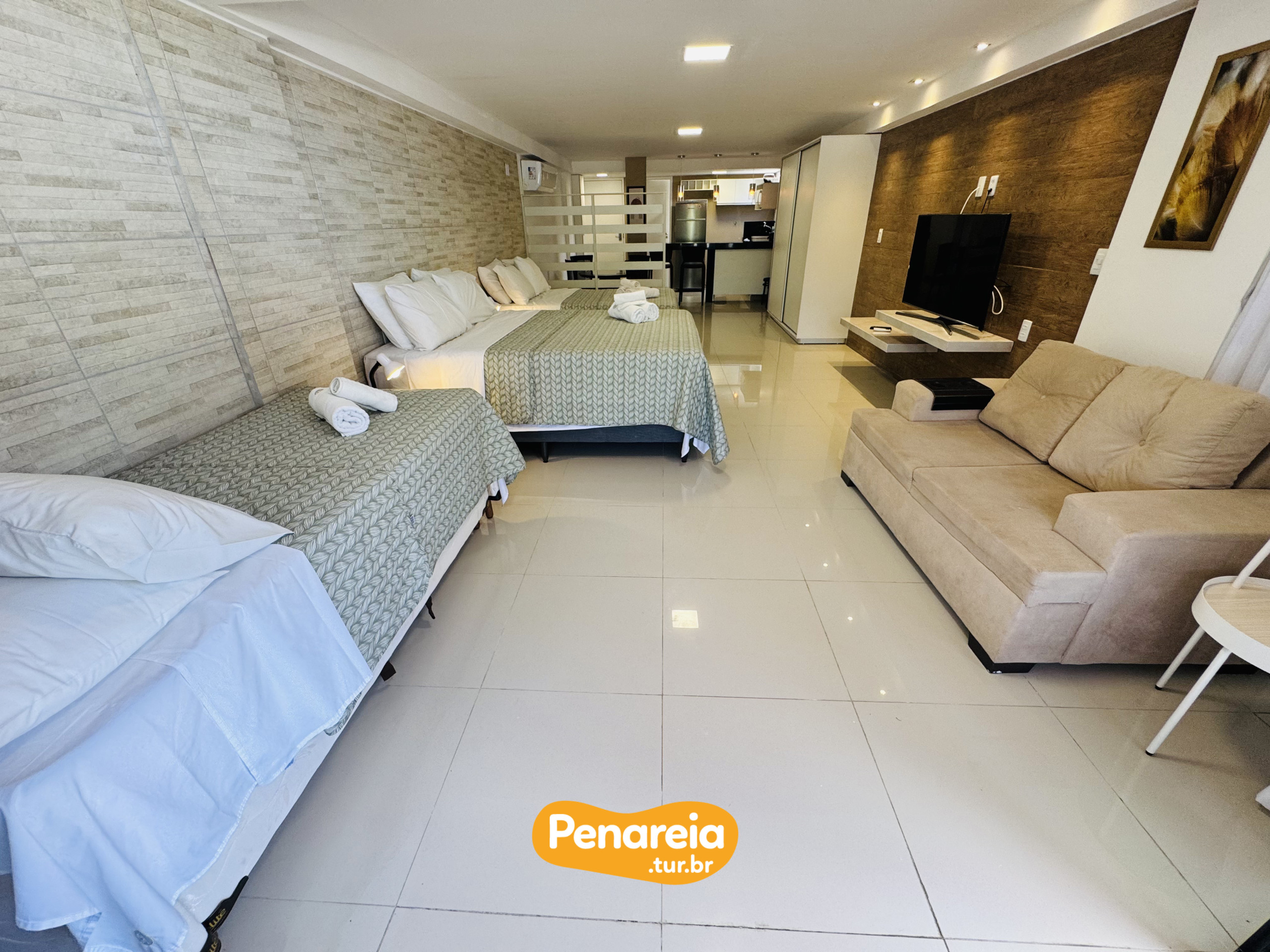 O flat é novo e confortável, com 30m² de espaço, 10m² de terraço e linda vista para o mar e o jardim. O condomínio possui sala de jogos (sinuca, mesa de xadrez), academia e piscina comunitária. O apartamento possui um quarto, com capacidade para duas pessoas, e uma cozinha americana totalmente equipada. O flat também possui elevador, um lindo jardim, terreno cercado, acesso à internet (wifi), ar-condicionado, garagem e uma televisão com TV a cabo.