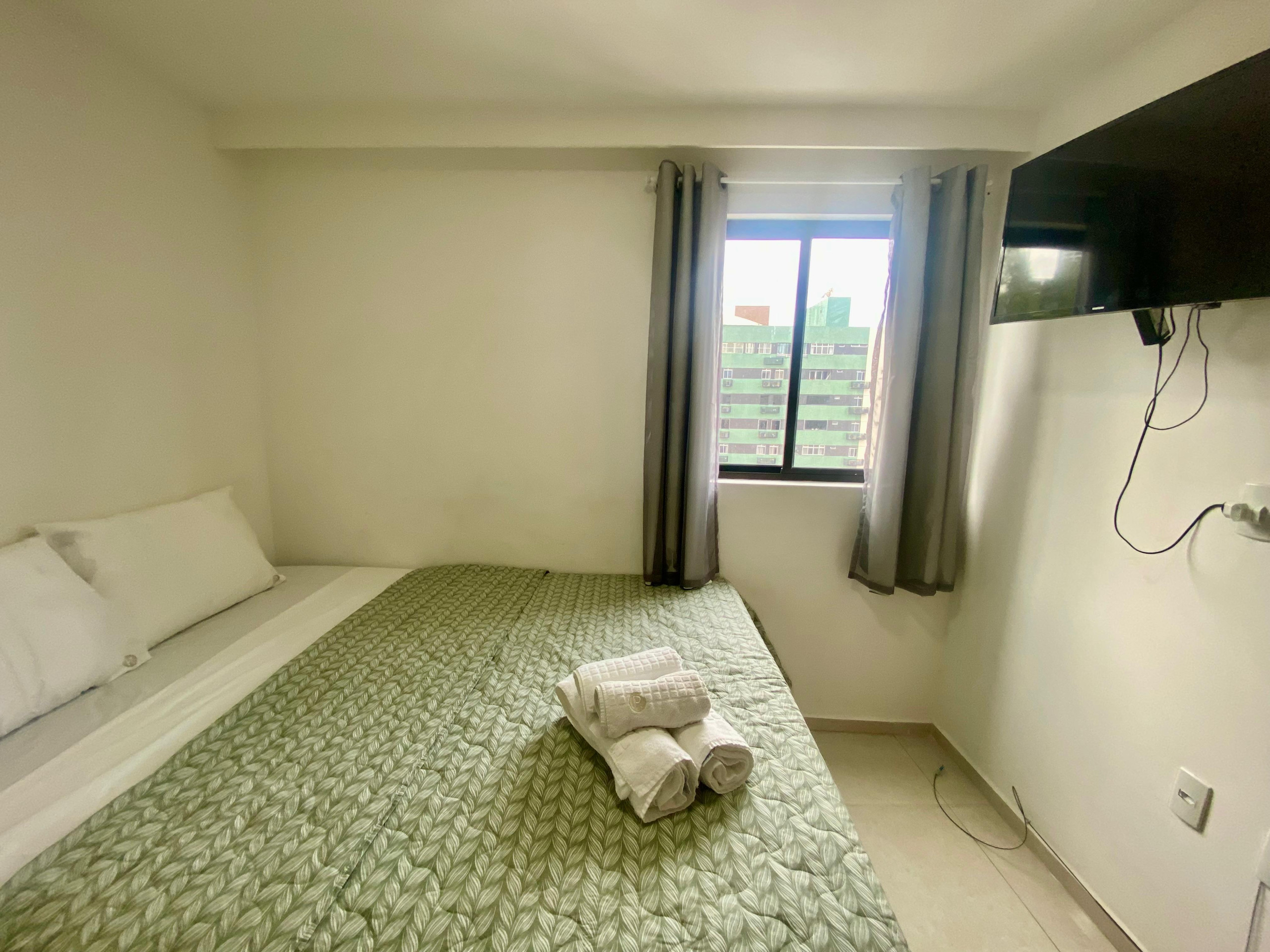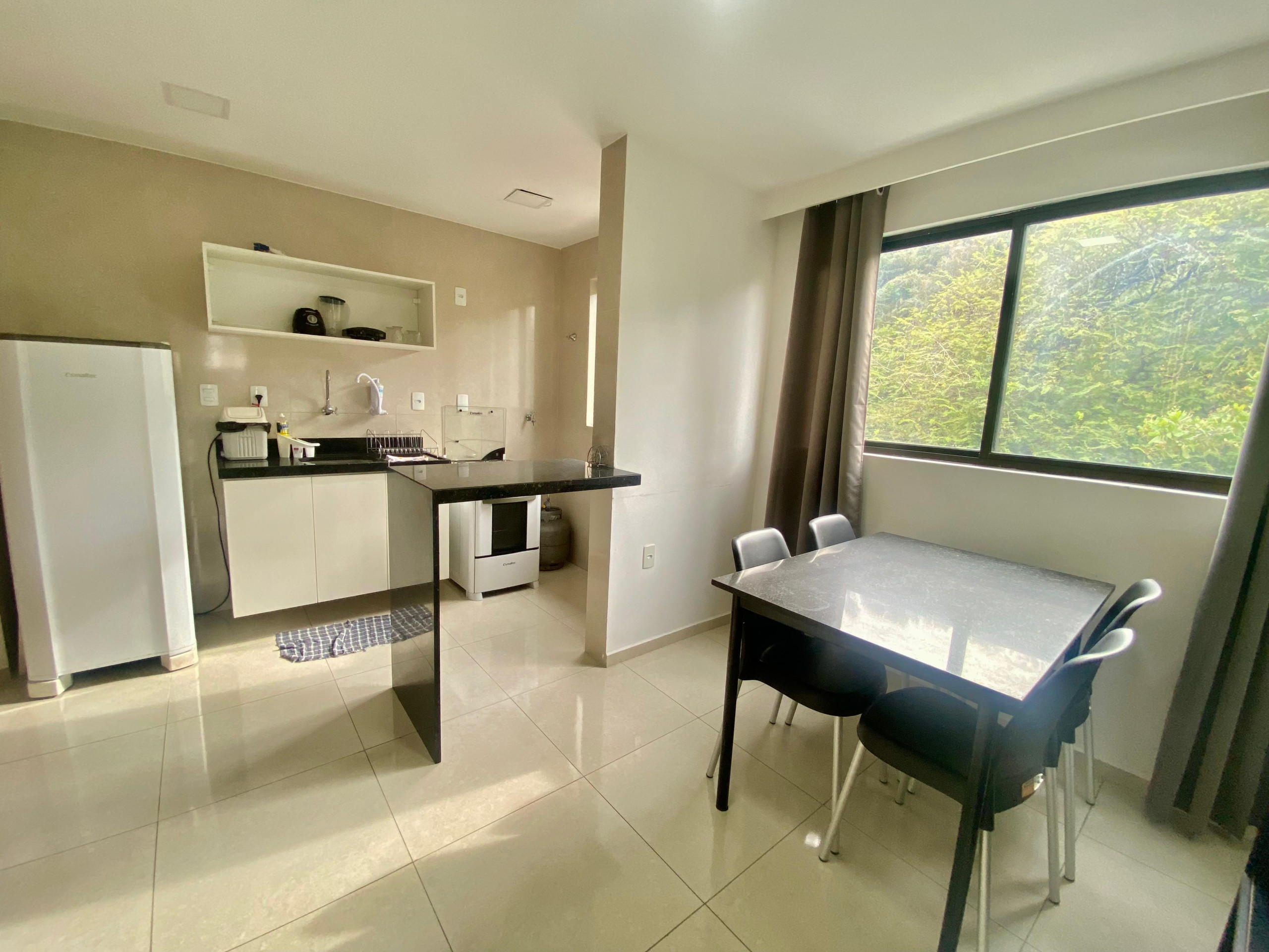 O Apart-hotel possui um Quarto sendo suíte(banheiro dentro do quarto), Cozinha equipada, Espaço de estar/ jantar. No Quarto tem uma Cama de Casal e Ar-condicionado, Banheiro com chuveiro de água quente, Cozinha com diversos utensílios de cozinha, Mesa com Cadeiras, Tv a Cabo no quarto, Internet Wi-Fi, Secador de cabelo, Ferro de passar.