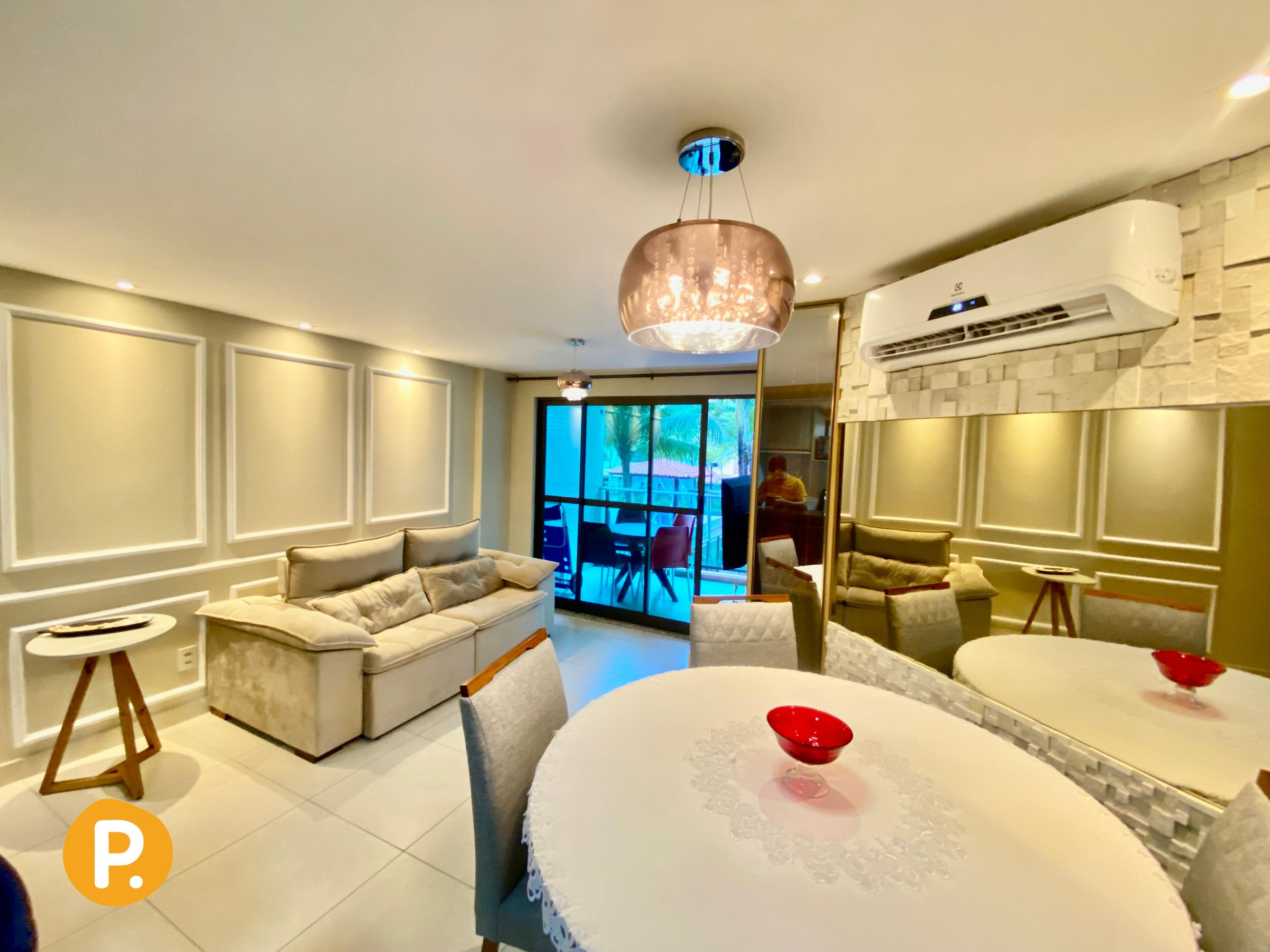 O apartamento dispõe de dois banheiros, ambos com chuveiro, facilitando a rotina de todos os hóspedes. A climatização é garantida por ar-condicionado em todos os ambientes, proporcionando conforto em qualquer época do ano.