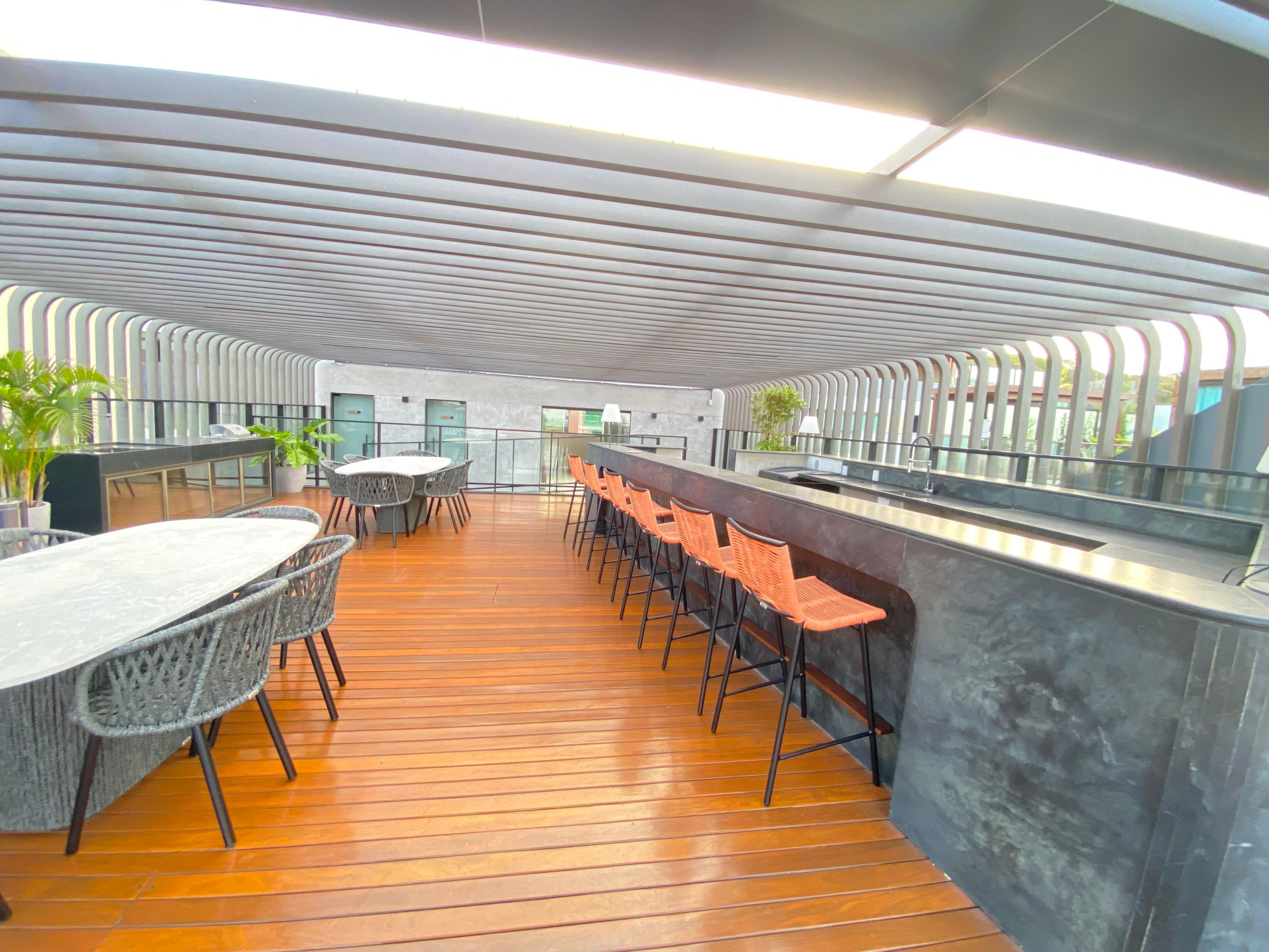 Entre as comodidades, destaca-se o estacionamento privativo em garagem no mesmo edifício, facilitando a mobilidade. Os hóspedes podem ainda desfrutar de uma piscina compartilhada de 10m² por 20m², perfeita para momentos de lazer, e uma academia para manter a forma durante a viagem.