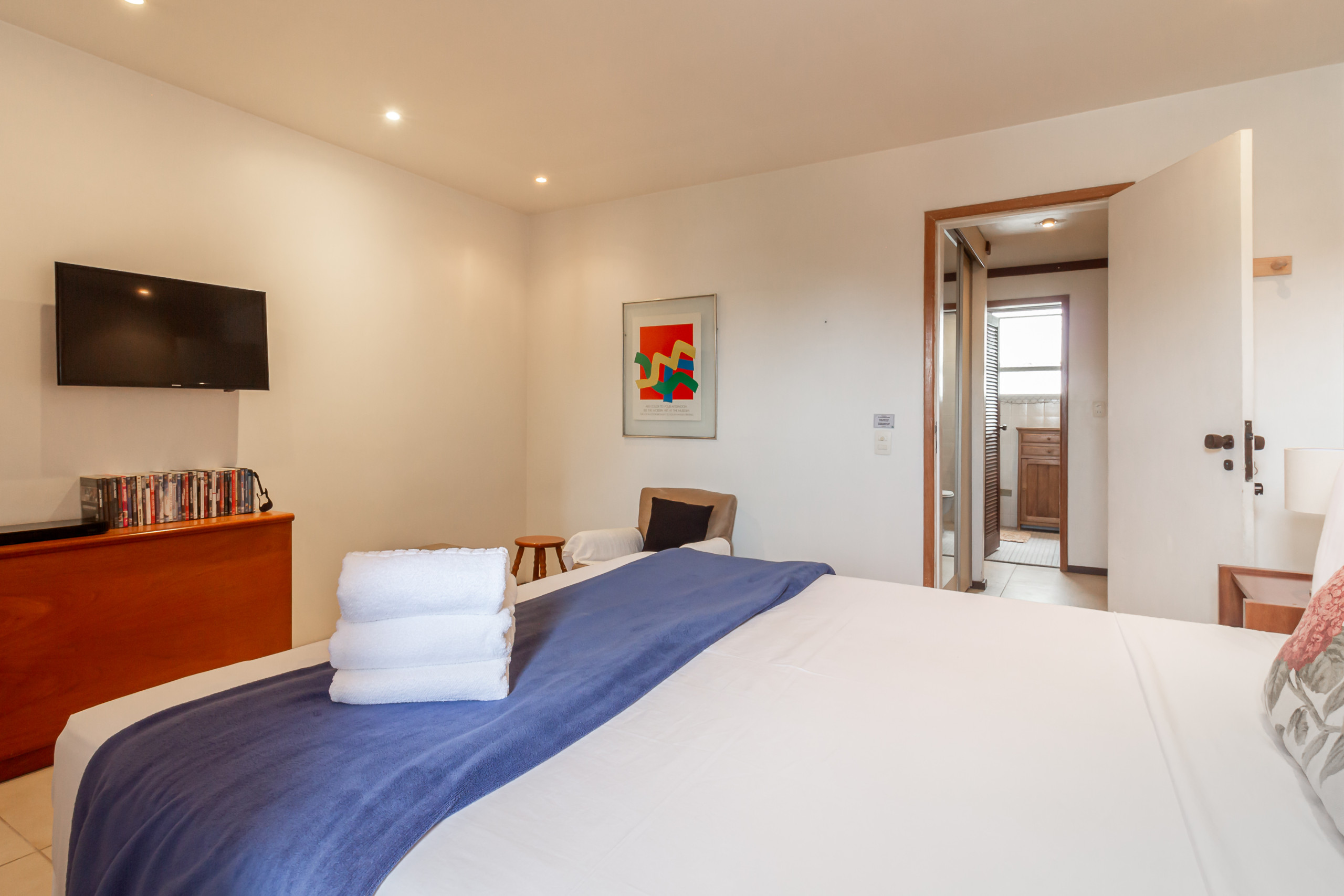 🛏️ Suíte master com TV, Blu-ray e pequena coleção de DVDs;