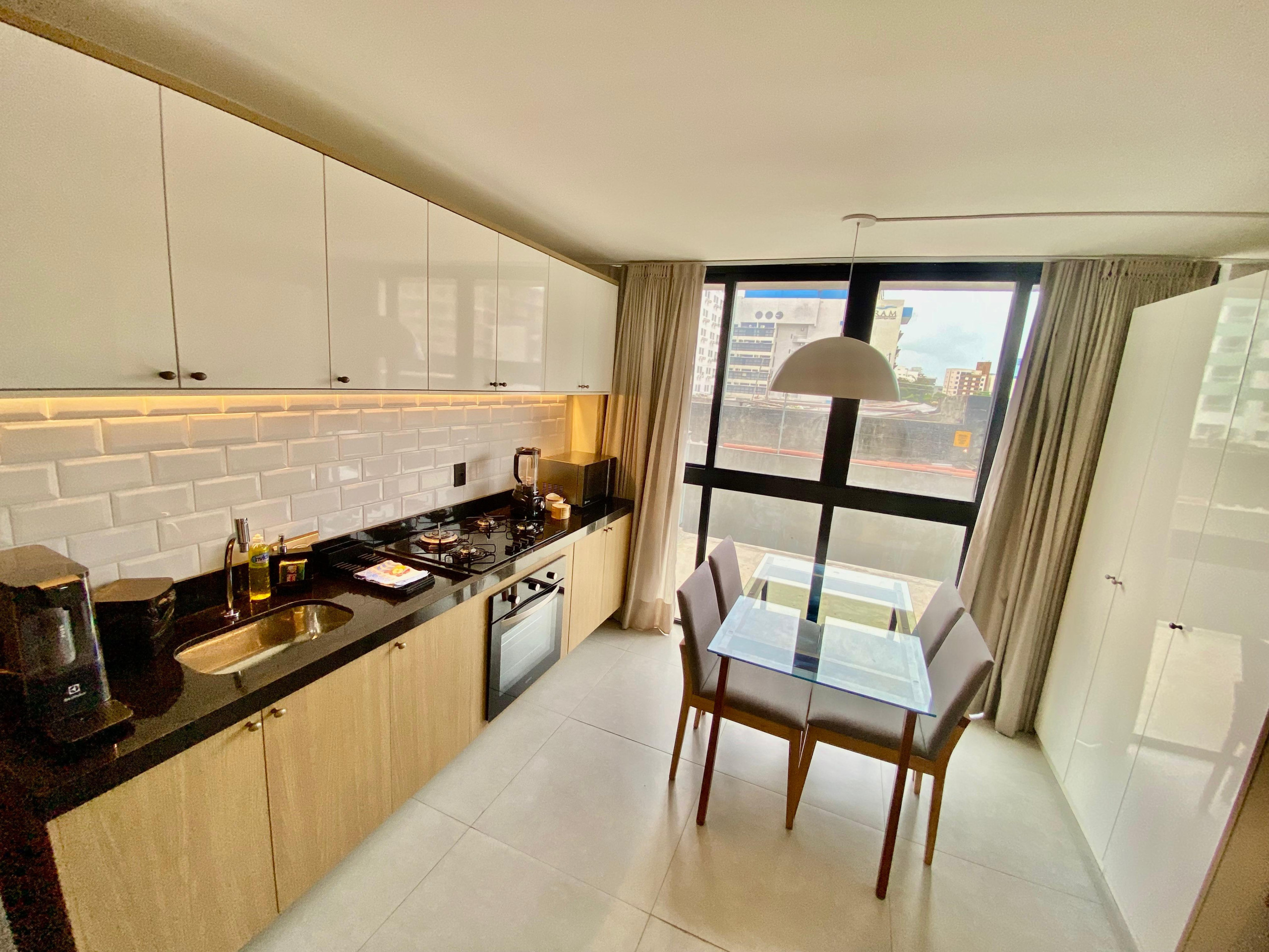 Die Ferienwohnung in João Pessoa verfügt über 2 Schlafzimmer und hat eine Kapazität für 5 Person(en) (max. 4 Erwachsene). Die komfortable und moderne Unterkunft verfügt über 49 m². Die Unterkunft befindet sich 0 m vom Kiesstrand entfernt, 200 m vom zum Sandstrand "Praia de Tambaú", in einer idealen Umgebung für Familien und in einer Ferienanlage.Die Unterkunft verfügt über einen Aufzug, einen Garten, Gartenmöbel, ein umzäuntes Grundstück, ein Internetanschluss (WLAN), ein Fitnessraum, eine Klimaanlage in allen Schlafzimmern, einen Gemeinschaftspool, eine überdachter Parkplatz auf dem Grundstück, 1 Fernseher.Die Offene Küche mit Gas-Kochfeld ist ausgestattet in einen Kühlschrank, eine Mikrowelle, ein Backofen, Gefrierschrank, Geschirr/Besteck, Kochutensilien, eine Kaffeemaschine, eine Fritteuse und eine Saftpresse.