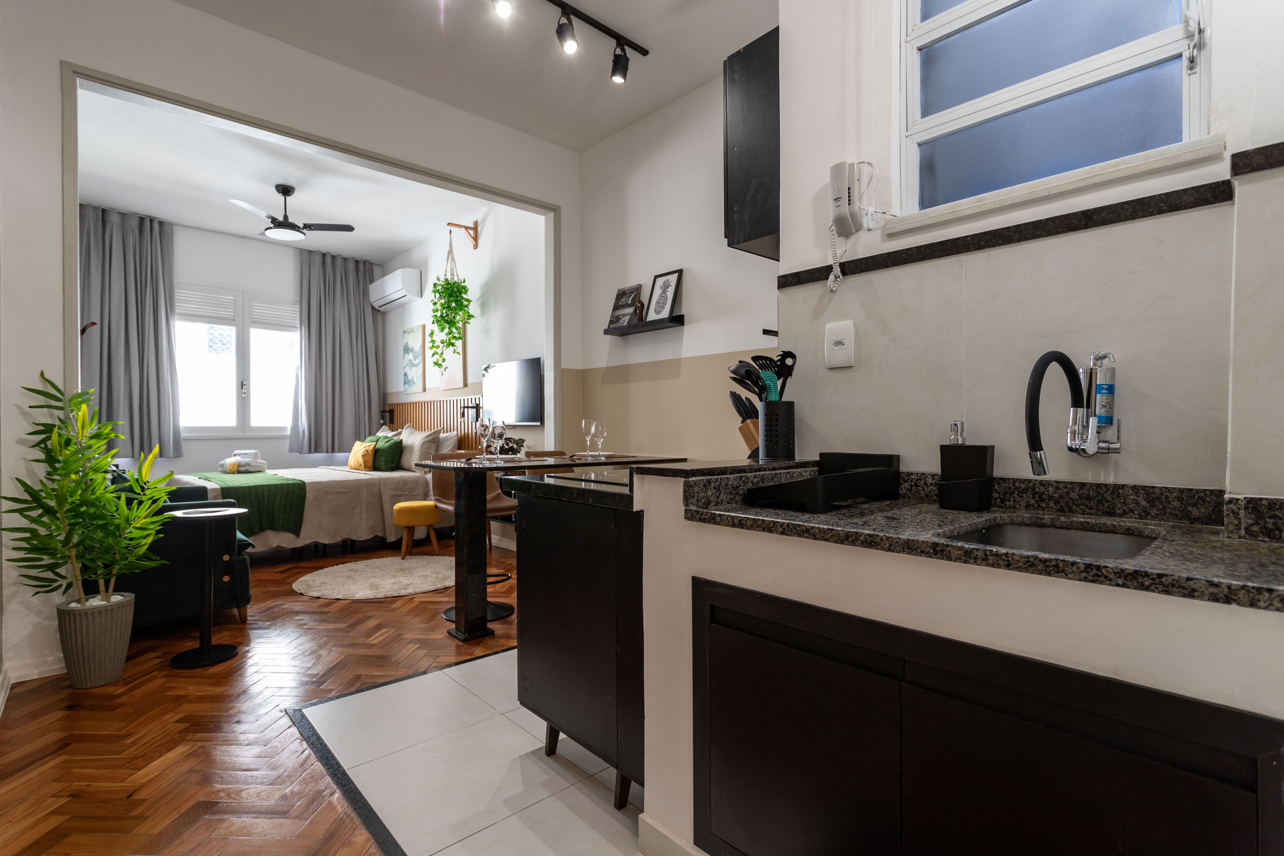 Descubra este encantador estudio en Copacabana, ideal para parejas o amigos, ¡con capacidad perfecta para 2 huéspedes!