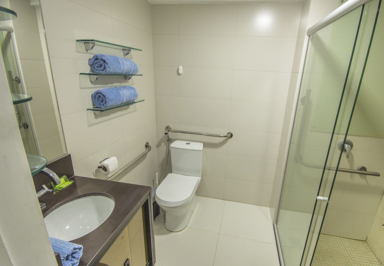 Appartement à João Pessoa qui possède 1 chambre(s) et Capacité pour 4 personnes (max. 3 adultes). Logement de 40 m² confortable et moderne, avec vue sur la mer. La location se trouve à 10 m du restaurant "Restaurante Roccia", 100 m de la plage de sable "Praia de Tambau", 500 m du supermarché "Bonfim", 20 km de l'aéroport "Aeroporto Internacioal Castro Pinto" et il est situé dans une zone idéale pour familles zone et proche du commerce et des restaurants.Elle dispose de ascenseur, jardin, mobilier de jardin, barbecue, fer à repasser, accès internet (wifi), sèche-cheveux, balcon, zone pour les enfants, salle de sport, spa, climatisation dans tout le logement, piscine collective, parking couvert même bâtiment, 1 Télévision.La cuisine américaine, à gaz, est équipée avec réfrigérateur, micro-ondes, four, congélateur, vaisselle/couverts, ustensiles/cuisine, cafetière, friteuse et grille pain.