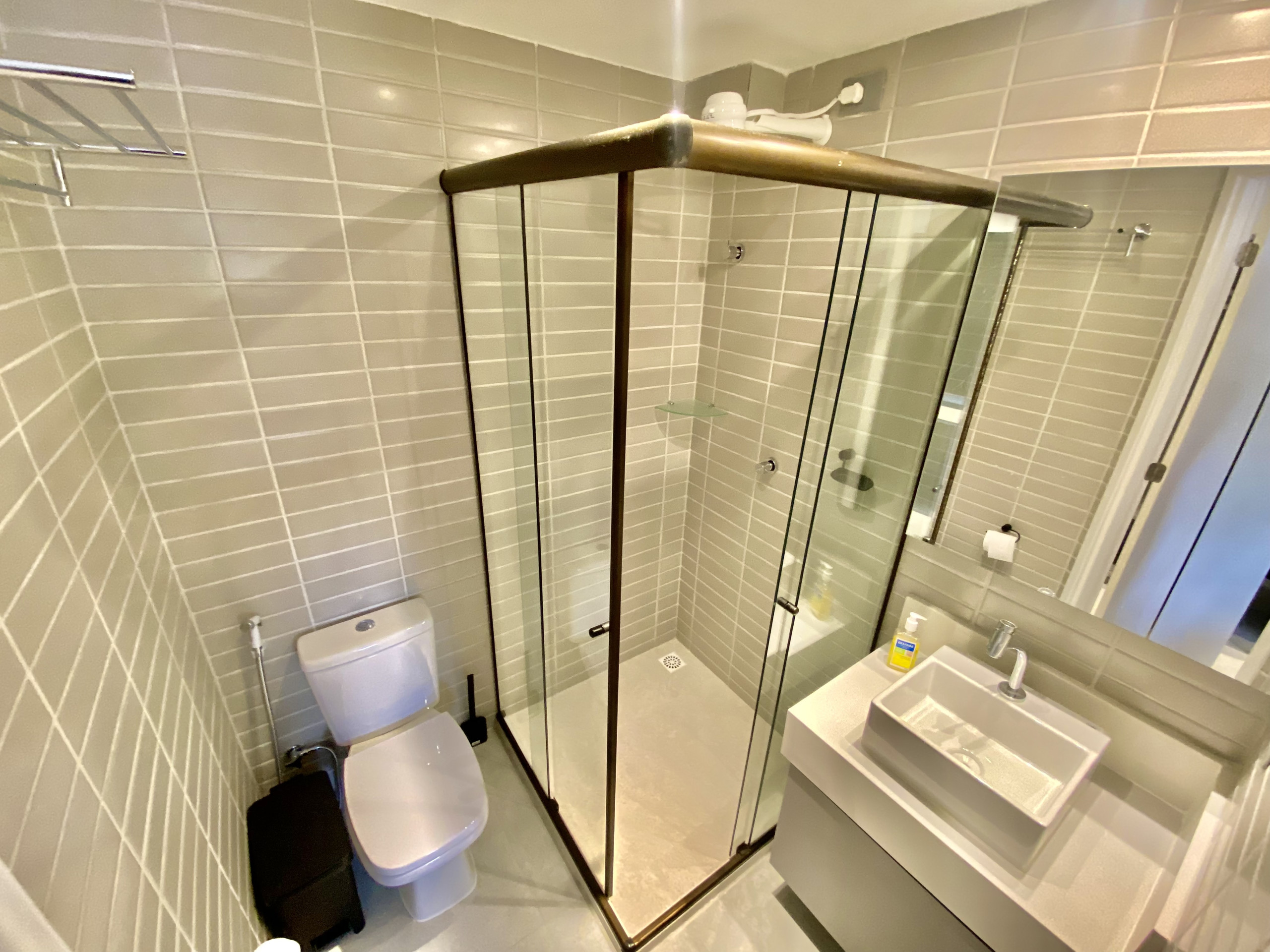 A cozinha americana, equipada com eletrodomésticos de alta qualidade, inclui geladeira, micro-ondas e freezer. Utensílios de louça e talheres estão à disposição, assim como utensílios de cozinha para atender às suas necessidades culinárias. Para os apreciadores de bebidas, há uma colher de sopa e um liquidificador disponíveis, tornando o preparo de refeições e bebidas mais conveniente e agradável.