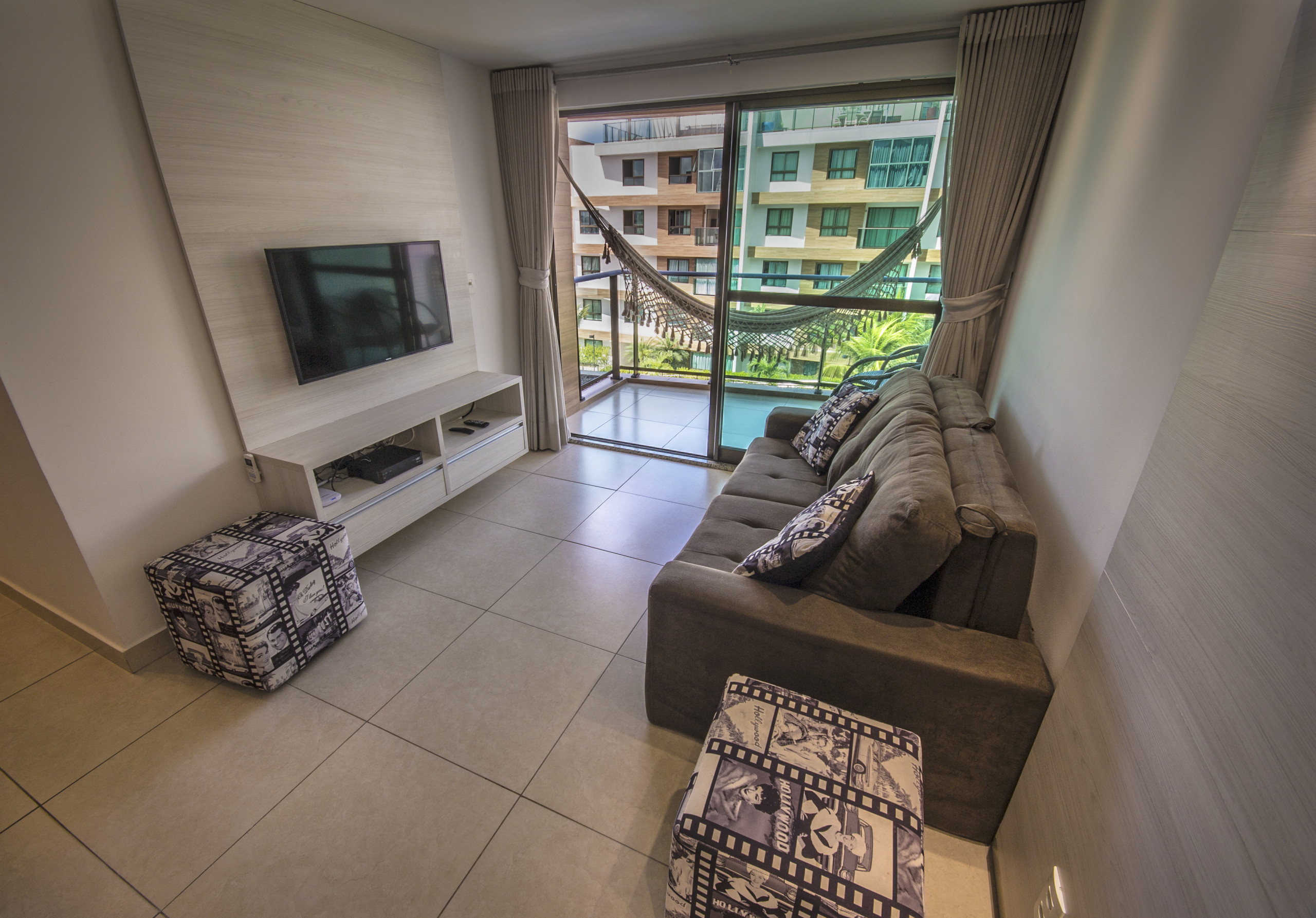 Possui dois Quartos sendo um Suíte (banheiro dentro do quarto) e um Quarto social, Banheiro social, Cozinha equipada com utensílios de cozinha, Sala de estar, Sala de jantar. Nos dois Quartos tem cama de casal e ar-condicionado, Banheiros com chuveiro de água quente, Cozinha com diversos utensílios de cozinha, Sala com sofá e ar-condicionado, Tv a Cabo na sala e no quarto suite, Internet Wi-Fi, Secador de cabelo, Ferro de passar e uma bela Varanda com Vista para a Praia.