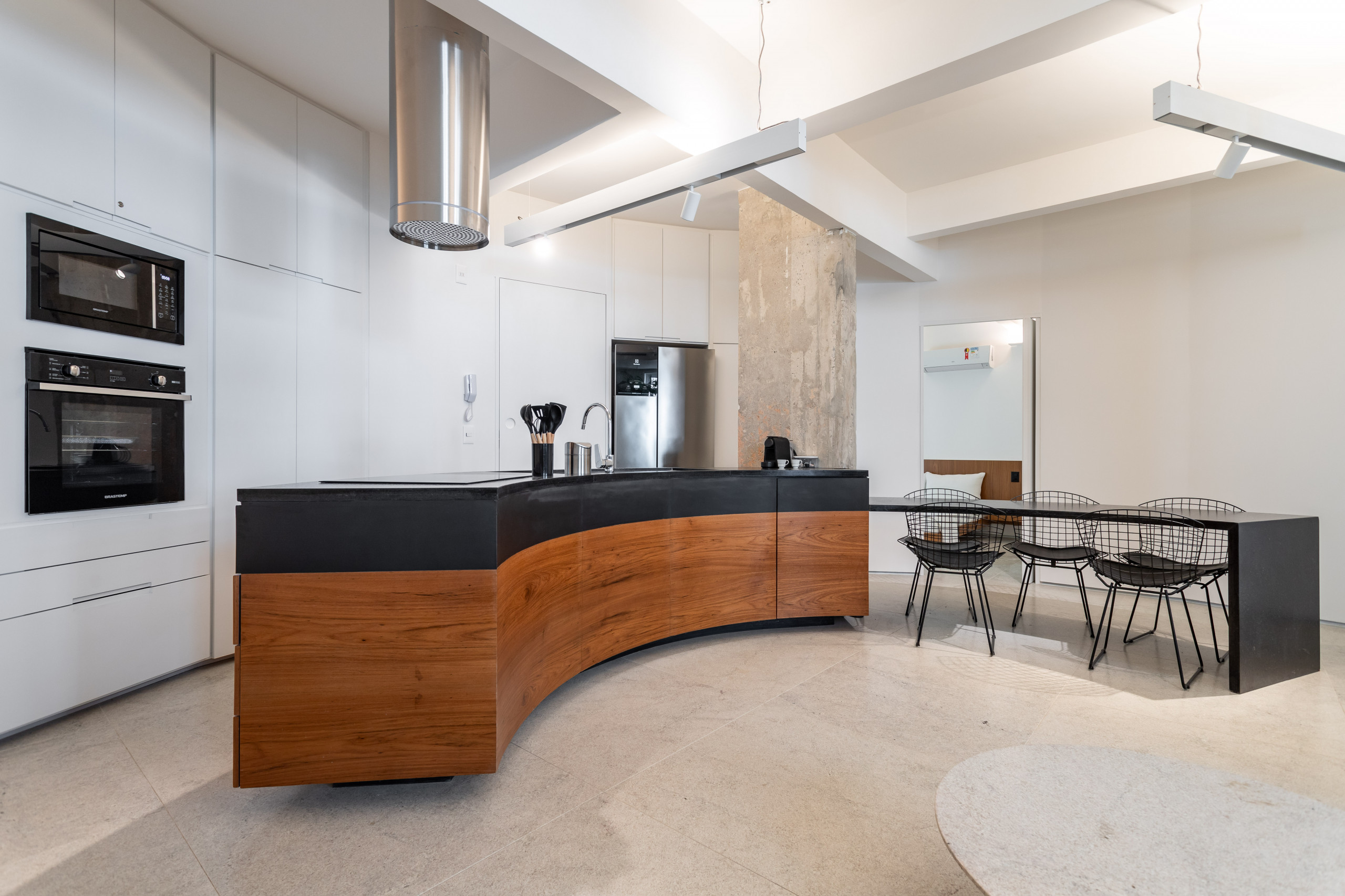 A cozinha é independente, de mista: gás e eléctrica, está equipada com frigorífico, microondas, forno, louça/talheres, máquina de café, torradeira, máquina de sumos, fogão, pratos e tigelas.