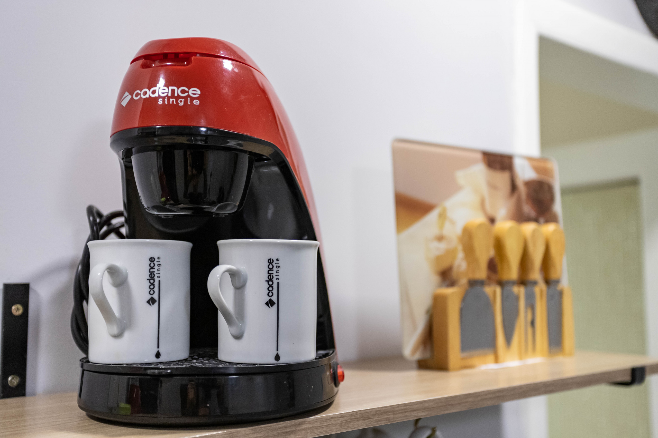 A kitchenette, de mista: gás e eléctrica, está equipada com frigorífico, microondas, congelador, louça/talheres, máquina de café, torradeira, máquina de sumos, pratos e tigelas, fogão.