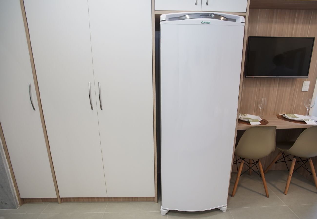 O estúdio em Rio de Janeiro tem capacidade para 2 pessoa(s). Alojamento de 25 m² acolhedor e moderno. Encontra-se a 0 m do campo de Golf, 50 m do supermercado "Supermercado Zona Sul", 50 m "Farro", 100 m "Spoleto", 100 m "Aipo e Aipim", 150 m "Mc Donald's", 280 m da praia de areia "Praia de Copacabana", 450 m metro "Estação Siqueira Campos", 800 m "Hospital Copa D´Or", 1 km da praia de areia "Praia de Ipanema", 2 km da praia de areia "Praia do Leme", 2 km da praia de rocha "Praia do Arpoador", 2 km "Lagoa Rodrigo de Freitas", 5 km "Pão de Açúcar", 5 km "Jardim Botânico do Rio", 7 km "Cristo Redentor", 9 km do aeroporto "SDU - Santos Dumont", 24 km "GIG - Galeão" e localizado numa zona ideal para famílias zone e junto ao mar.Dispõe de elevador, ferro de engomar, acesso internet (wifi), secador de cabelo, ar-condicionado, 1 ventilador, 1 Televisão.A kitchenette, de gás, está equipada com frigorífico, microondas, forno, congelador, louça/talheres, máquina de café, torradeira, máquina de sumos e pratos e tigelas.